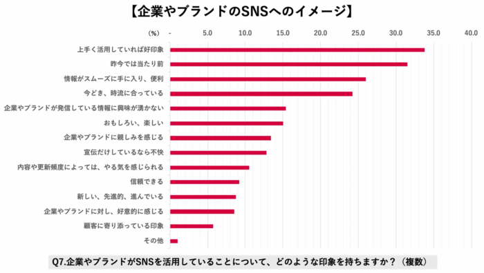 本調査では、企業SNSアカウントに対して「活用が上手であれば好印象」と答えた生活者が33.8%に上る一方で、「宣伝中心の発信」には不快感を抱くという回答も出ている