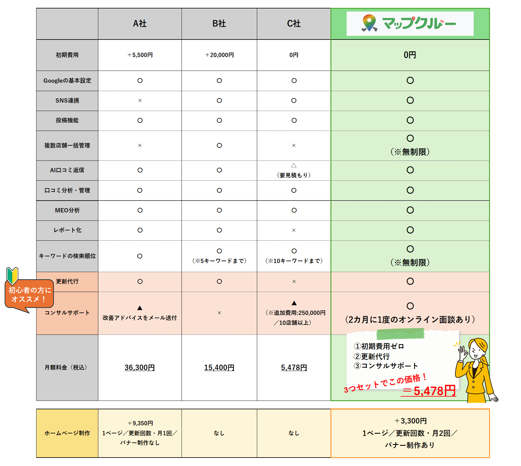 ■「他社vsマップクルー」の料金・機能を徹底比較!