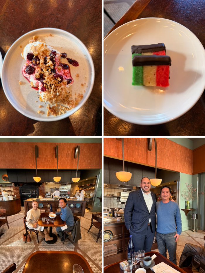 食後にふらりと現れた店長もまた、ホスピタリティの体現者。ゲストとの会話を楽しみ、イタリア国旗をモチーフにしたおしゃれなスイーツをネタに「日本とイタリアのデザートの甘さ加減はちょうどいいよねぇ」と盛り上がった。