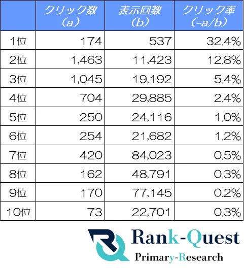まずは順位別のクリック率について。上位にクリックが集中するのは以前と変わりが無いのだが、その割合が特に上位クリックに偏ってきている印象がある。検索をよく使う方ならお分かりと思うが、直近の検索結果にはAIによりサマライズされた情報が上位に表示されるなど、より上位の情報に注目する環境ができている。であるからして、検索結果において、より上位に表示される価値が上がっているとも言えそうだ。