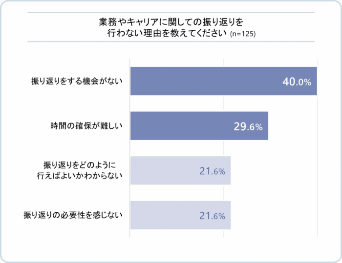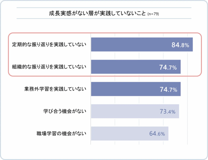出典:【調査レポート】定期的な振り返りを行う人は、成長実感・仕事への意欲・組織への愛着が約2倍に(株式会社コードタクト)