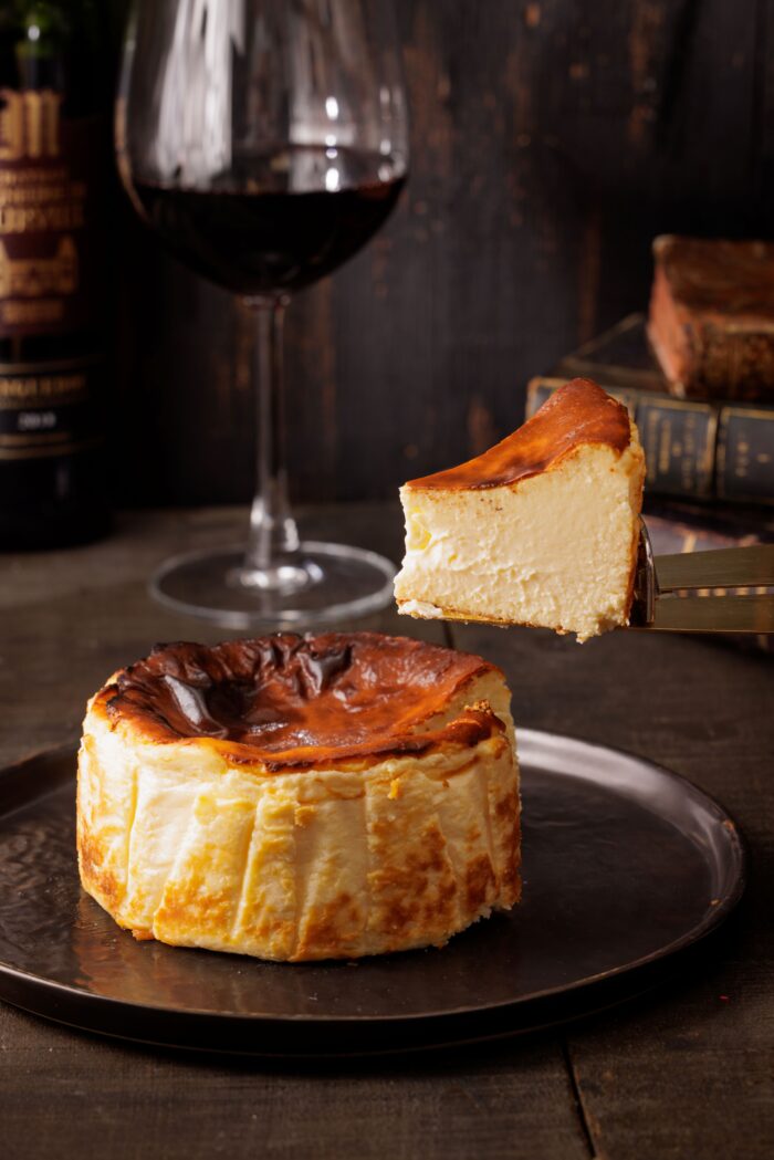 北海道産クリームチーズの旨みをぎゅっと凝縮したバスクチーズケーキです。粉を使わないグルテンフリー製法と二段熟成が生む、濃厚でしっとりとろける口どけが魅力。素材の風味を最大限に引き出した逸品です。