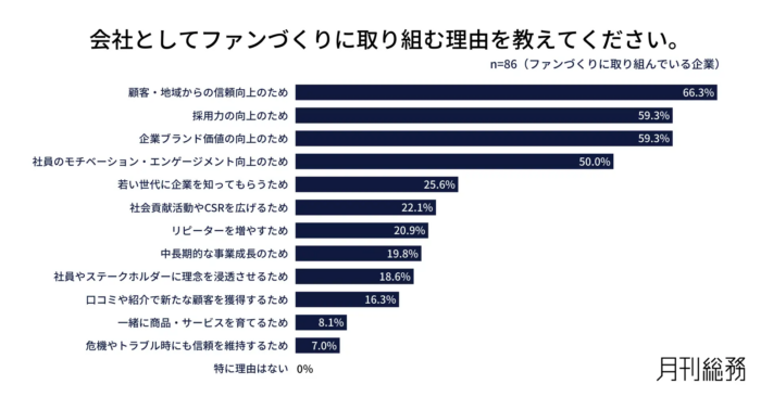 出典:7割の企業がファンづくりの必要性を実感するも、約半数が未着手。次世代向けファンづくりの主目的は「将来の採用」(株式会社月刊総務)