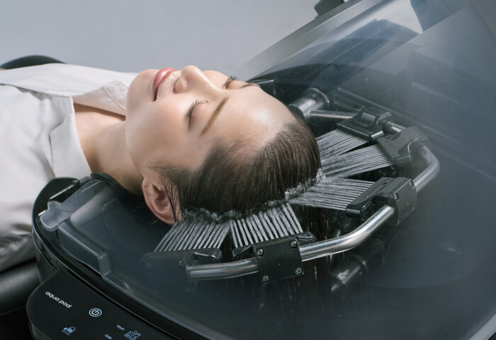 こうした「スタッフの負担軽減」と「お客さまの満足・快適性」の両立を追求する中で、新しい自動シャンプー機器「aqua pod」が誕生しました。