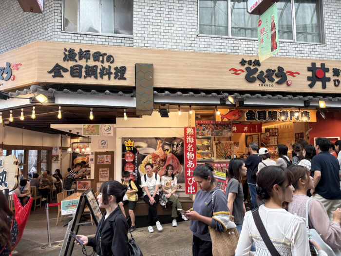 今回、訪問したのは『とくぞう 熱海さかな横丁 熱海銀座通り店』。東伊豆町稲取発祥で水産加工品の製造・販売、そして飲食業などを手掛ける『徳造丸』が営業している。 熱海駅から徒歩1分の場所には『海鮮丼とくぞう 熱海本店』があるが、熱海銀座通り店は熱海駅から徒歩14分ほどの場所にある。